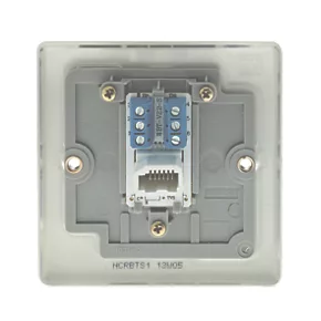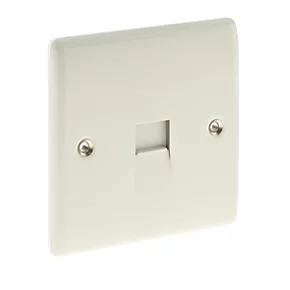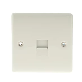 Slave socket with screw type connections for secondary and extension telephone sockets. Sleek and slim design with soft, rounded corners.