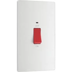 British General Evolve 45A 1-Gang 2-Pole Cooker Switch Pearlescent White with LED with White Inserts