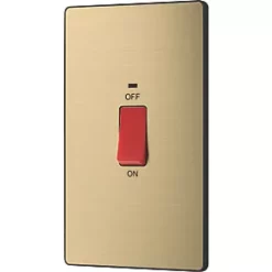 British General Evolve 45A 1-Gang 2-Pole Cooker Switch Satin Brass with LED with Black Inserts