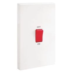 British General 900 Series 45A 2-Gang DP Cooker Switch & 13A DP Switched Socket White with Neon