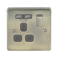 British General 900 Series 13A 1-Gang SP Switched Socket + 2.1A 2-Outlet Type A USB Charger White