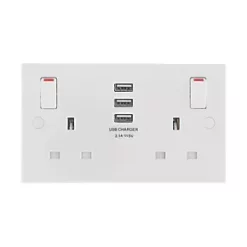 British General 900 Series 13A 2-Gang SP Switched Socket + 3.1A 3-Outlet Type A USB Charger White