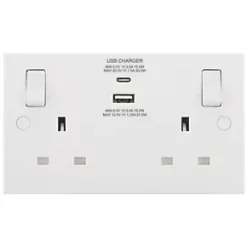 British General 900 Series 13A 2-Gang SP Switched Socket + 3A 2-Outlet Type A & C USB Charger White