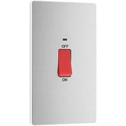 British General Evolve 45A 1-Gang 2-Pole Cooker Switch Brushed Steel with LED with White Inserts