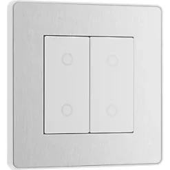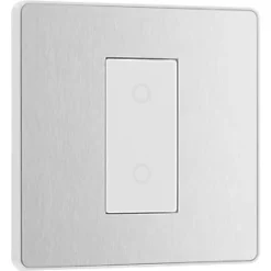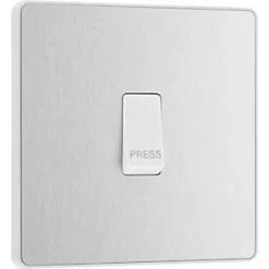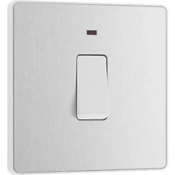 British General Evolve 20A 1-Gang DP Control Switch Brushed Steel with LED with White Inserts