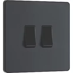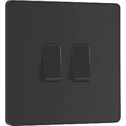 British General Evolve 20 A 16AX 2-Gang 2-Way Wide Rocker Light Switch Matt Black with Black Inserts